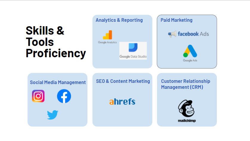 Create indentity and personaCreate social media strategyDefine goals and target audienceSocial media report and analysis